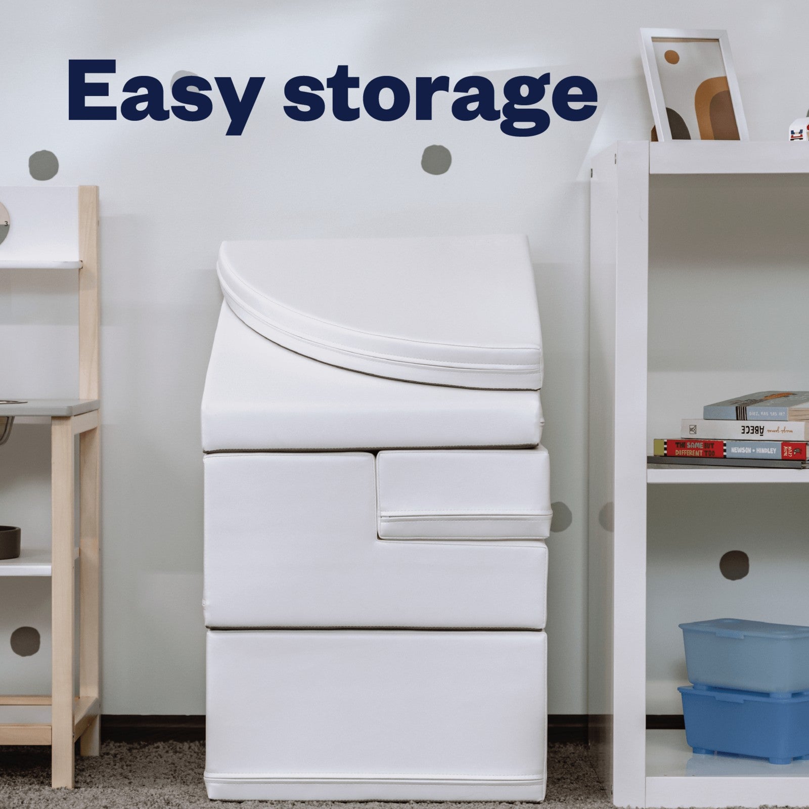 De mogelijkheden groeien mee met je soort: een eigen hindernisbaan maken, spelletjes spelen of de blokken gebruiken om zelfstandig bij een stoel of bed te klimmen. Zelfs huisdieren doen mee – en voor volwassenen zijn de vormen verrassend handig, bijvoorbeeld als laptopstandaard!